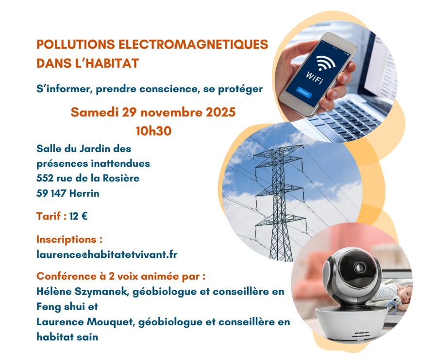 J’aurai le plaisir de partager la parole avec ma consœur Laurence MOUQUET lors d’une prochaine conférence à HERRIN sur les pollutions électromagnétiques dans l’habitat.